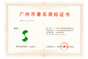 廣東省著名商標(biāo)證書