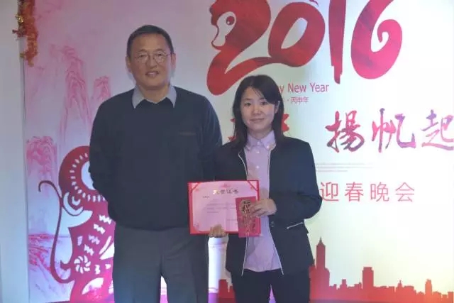 2015年度優(yōu)秀員工獲得者淡靜容與楊總合影